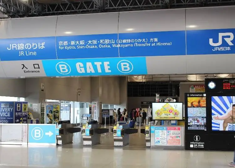 탑승 시에도 JR과 난카이 전철의 개찰구가 옆에 위치해 있으니 혼동하지 않도록 주의하세요.