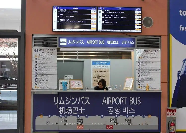 도착구와 같은 층에 리무진 버스 티켓 카운터도 있으므로, 버스 이동을 계획 중인 분들은 여기서 구매하는 것도 한 가지 방법입니다. 이 티켓 카운터에서는 항상 일본어와 영어로 대응이 가능합니다.