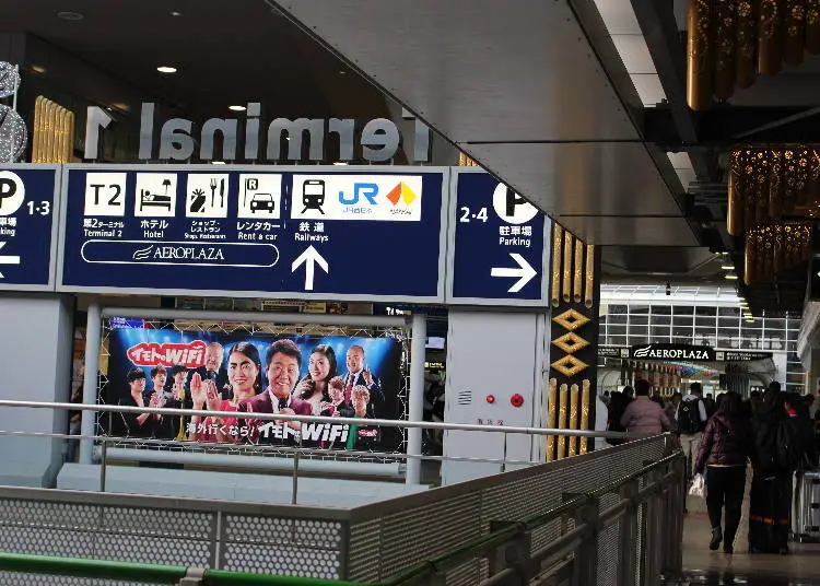 JR과 난카이 전철의 승차장이 있는 간사이 공항역은 제1 터미널 빌딩 2층의 연결 통로와 연결되어 있습니다.