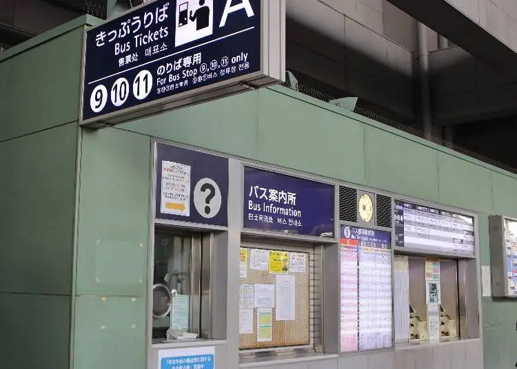 티켓은 버스 승차장 근처에 설치된 티켓 판매기에서 구매할 수 있습니다. 티켓 판매기는 일본어와 영어를 지원합니다.