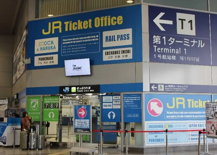 JR 티켓 사무소에서는 영어, 중국어, 한국어, 일본어를 구사하는 직원이 응대하는 경우도 있습니다. 난카이 전철 티켓 정보 센터에서는 일본어와 영어 외의 고객을 위해 휴대용 통역기가 도입되어 있습니다.