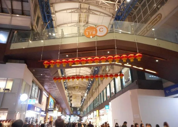 모토마치 상가 / 난징 마치 : JR 또는 한신 전철을 이용해 “원초역”에서 가는 것이 편리