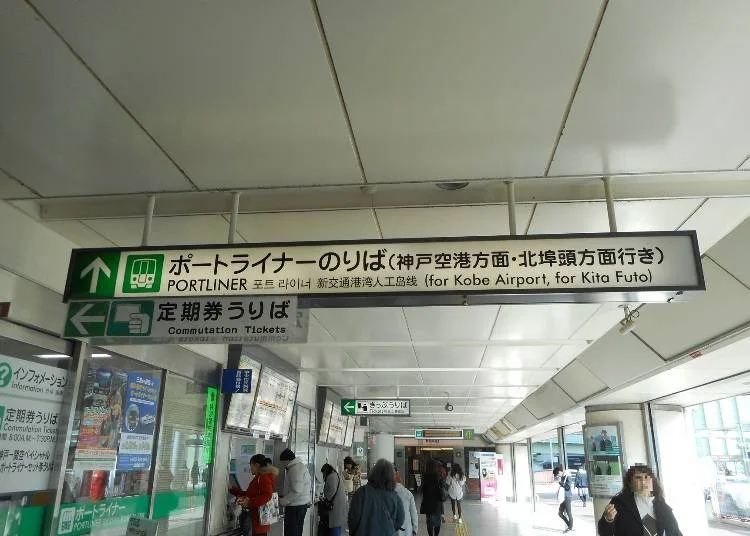JR ‘산노미야 역’ 동쪽 출구 개찰구를 남쪽으로 나와 에스컬레이터를 타면 포트라이너 '산노미야 역'에 도착합니다.