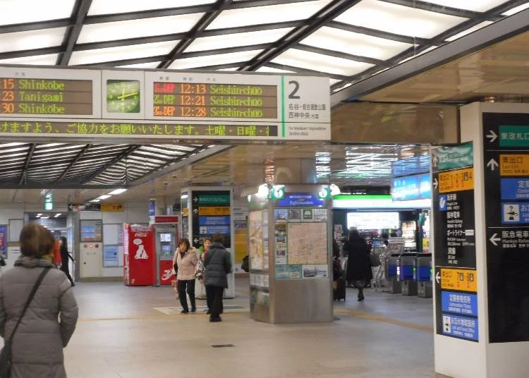 산노미야와 오사카 사이에는 JR, 한큐 전철, 한신 전철의 3개 노선이 병행하여 운행되므로, 어느 노선을 이용해도 오사카·우메다로 갈 수 있습니다. 다만 소요 시간과 요금이 다르므로 일정 맞게 선택하세요.