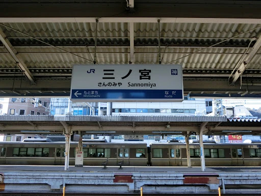 산노미야역은 사실 철도별로 조금씩 역명이 다릅니다. JR은 산노미야역(三ノ宮駅), 한큐 전철과 한신 전철은 고베 산노미야 역(神戸三宮駅), 고베 시영 지하철 서신·산테선은 산노미야 역(三宮駅), 고베 시영 지하철 해안선은 산노미야·화시계 앞 역(三宮・花時計前駅), 포트라이너는 산노미야 역(三宮駅)입니다.
