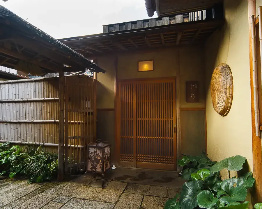 옛 민가를 리노베이션한 정취 있는 「교토 기온 가와무라 요리헤이(かわむらりょうりへい)」에서는 교토 요리의 정통 회석을 맛볼 수 있습니다.