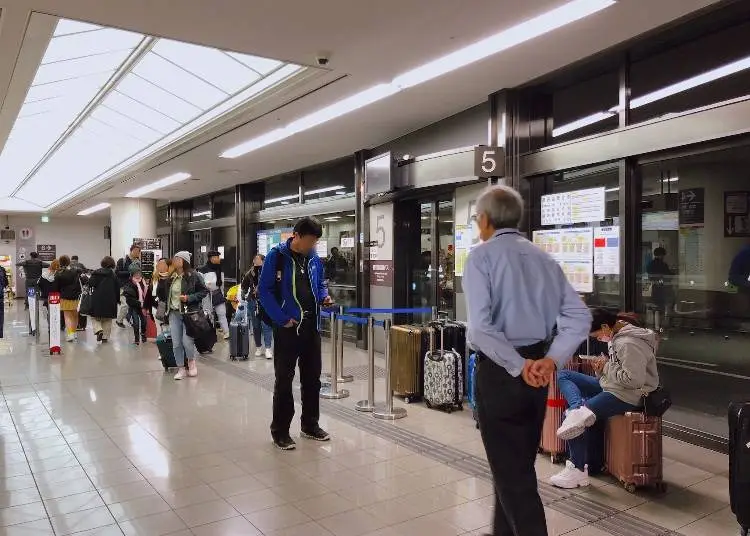 티켓 판매기는 영어, 중국어, 한국어를 지원하며, 동전, 지폐, 일본 내 교통용 IC 카드를 사용할 수 있지만 신용카드는 사용 불가합니다. 외국인 전용 티켓 카운터는 영어, 중국어, 한국어를 구사하는 직원이 응대하며, 신용카드도 사용할 수 있습니다.