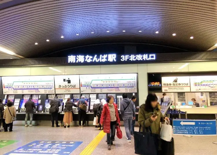 3층 개찰구에는 상업 시설 '난바 스카이오'와 백화점 '고시마야'로의 입구도 있으며, 밖으로 나가지 않아도 쇼핑이나 식사를 즐길 수 있습니다. '난바 스카이오'에는 일본 특산품 가게와 푸드 홀도 있어 풍성한 시간을 보낼 수 있을 것입니다.