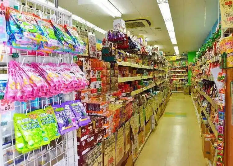 옛날부터 전해 내려오는 간식부터 스낵 과자까지, 일본 과자가 진열된 전문점. 한꺼번에 구매하기도 쉽고, 다양한 기념품 찾기에 딱입니다.