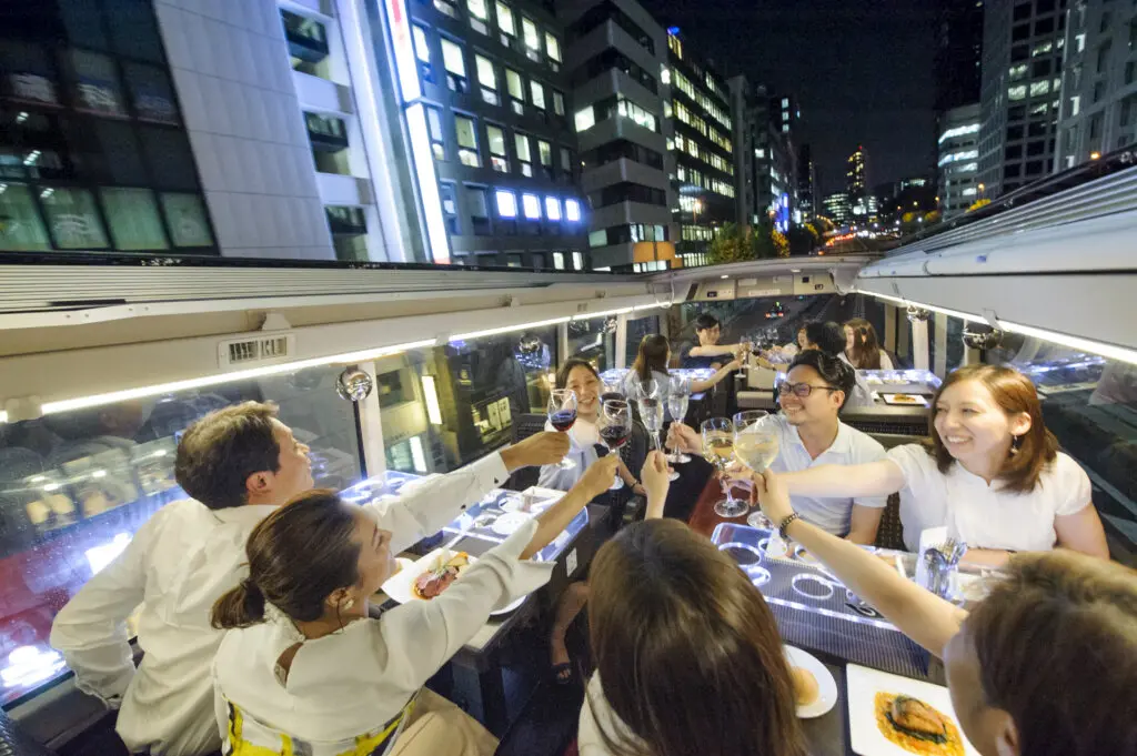 첫 번째는 여자 모임이나 친구들과의 식사 모임, 회사에서의 환영회로 활용하는 것입니다. 식사를 즐기며 대화에 활기를 불어넣는 것은 물론이며 도쿄 레스토랑 버스의 독특한 경관을 감상하거나 관광도 가능해 추억 만들기에 최적입니다.