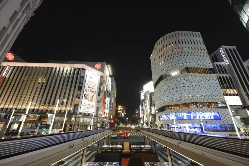 또한 도쿄 레스토랑 버스는 천장을 개폐할 수 있으며, 개방 시 높이가 약 3m 정도입니다. 약 3m 높이에서 바라보는 도쿄는 일반 관광 버스 투어와는 다른 독특한 경험입니다. 도쿄 레스토랑 버스 투어만의 특별한 경험입니다. 천장을 뚫고 나온 높이에서 도쿄의 풍경을 촬영할 수 있습니다.