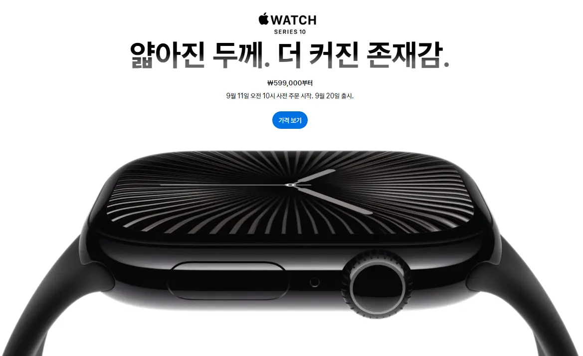 애플워치 시리즈10의 경우 9월 11일 오전 10시에 사전 주문이 시작되며, 9월 20일 출시됩니다.