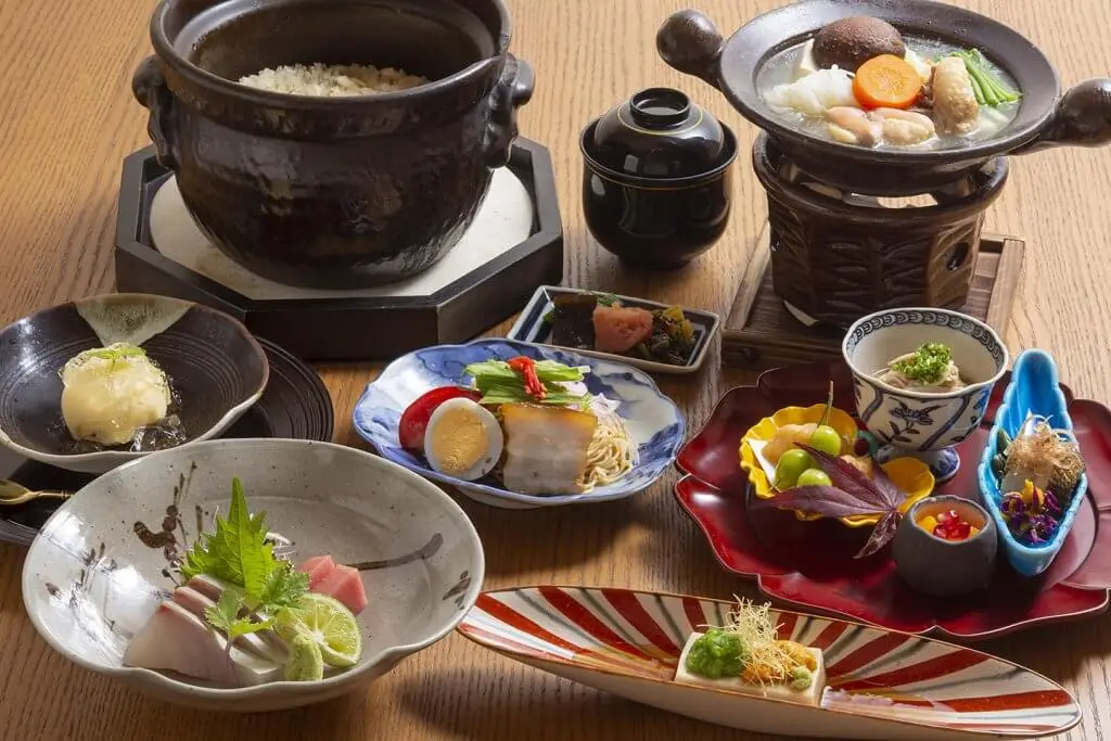 일식을 좋아한다면 초밥과 튀김이 세트로 구성된 '덴부라 니기리젠'이나 튀김과 해산물 덮밥이 세트로 구성된 '덴부라 해산물 덮밥 젠'을 추천합니다. 회식이나 천천히 맛보고 싶은 점심 식사로는 여러 가지 반찬을 예쁘게 담은 '채색 꽃바구니 정식'이나 가마솥밥에 생선회, 구이, 튀김이 포함된 '점심 가이세키 코스'가 제격입니다.