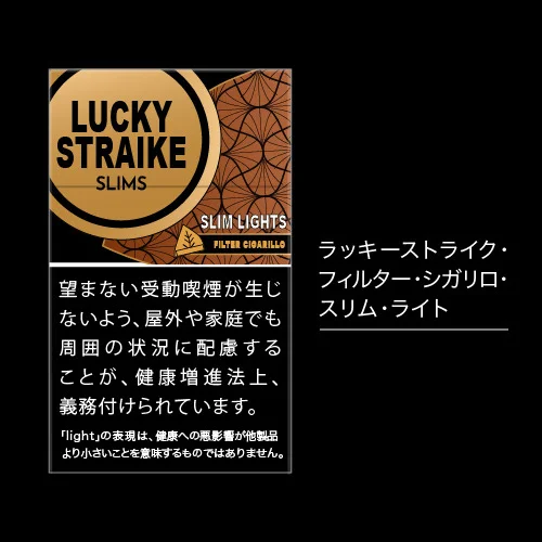 「럭키 스트라이크 필터 시가리로 슬림 라이트」는 럭키 스트라이크 유일의 리틀 시가 타입입니다. 시가 초보자용으로 추천하는 담배로, 버지니아 잎의 풍미와 진한 맛을 느낄 수 있습니다.