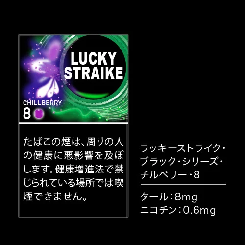 「럭키스트라이크 블랙 시리즈 칠베리 8」은 타르 함량이 8mg으로, 칠베리 시리즈 중 가장 높습니다.
