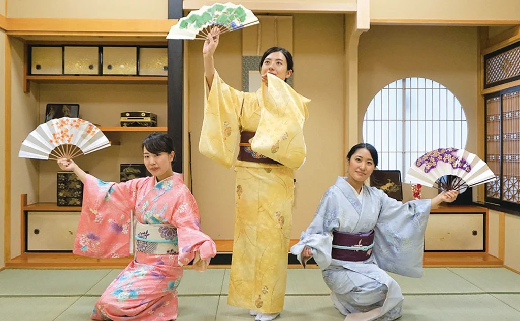 가부키 무용의 기법을 바탕으로 발전한 '일본 무용'. 일본 무용가는 기모노를 입고 부채와 손바닥을 화려하게 움직이며 춤을 춥니다. 때로는 풍경의 묘사, 때로는 다양한 배역의 모습을 아름다운 몸짓으로 재현합니다.