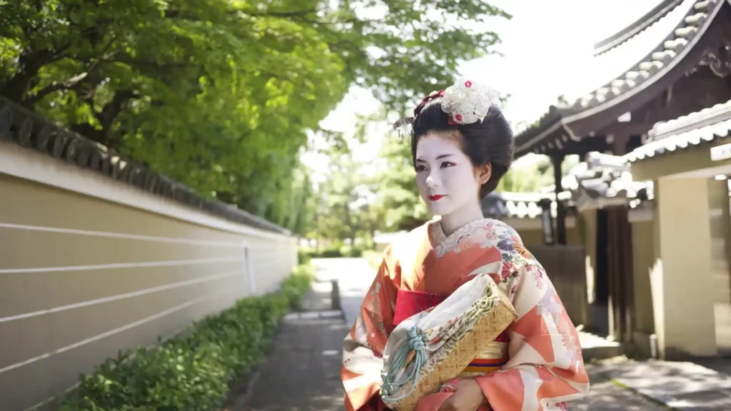 게이샤는 춤과 샤미센 연주, 노래를 비롯해 다양한 춤으로 연회 자리를 화려하게 장식하며 손님을 접대하는 여성을 말합니다. 기모노를 입고 수화(水化粧)라는 특수한 화장을 한 여성을 말합니다. 그리고 마이코는 게이샤의 견습생 소녀를 가리키는 교토 특유의 것입니다. 마이코는 주로 교토에서, 게이샤는 도쿄의 아카사카나 아사쿠사를 비롯한 각지의 번화가에서 만날 수 있습니다.