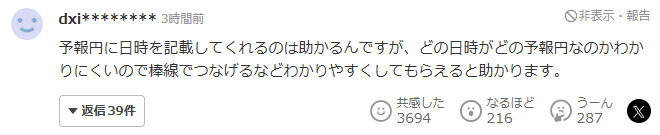 예보 원에 날짜와 시간을 기재해 주는 것은 도움이 되지만, 어느 날짜와 시간이 어느 예보 원인지 알기 어렵기 때문에 막대선으로 연결해 주는 등 쉽게 알 수 있게 해 주면 좋을 것 같습니다.