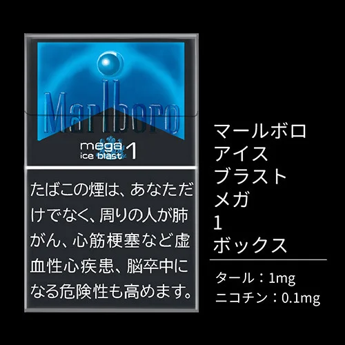 '말보로 아이스 블라스트 메가 1 박스'는 일본 최대 규모의 캡슐을 필터에 탑재했습니다. 시원하고 강한 멘솔이 특징이며, 담배느낌은 적습니다. 달콤함이나 과일 향이 적은 멘솔 담배를 선호하는 여성에게 적합합니다.