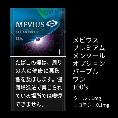 천연 멘솔 100%가 특징인 '메비우스 프리미엄 멘솔 옵션 퍼플 원 100’s'는 블루베리 계열의 멘솔 담배입니다.