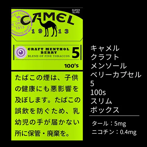 슬림 타입의 베리 멘솔을 원하시는 분에게는 「캐멜 크래프트 멘솔 베리 캡슐 5 100s 슬림 박스」를 추천합니다.