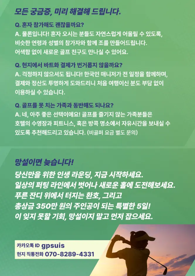 [10월19일 출발확정] 태국/방콕 3박5일 에카차이배 아마추어 골프 대회-골프 54홀