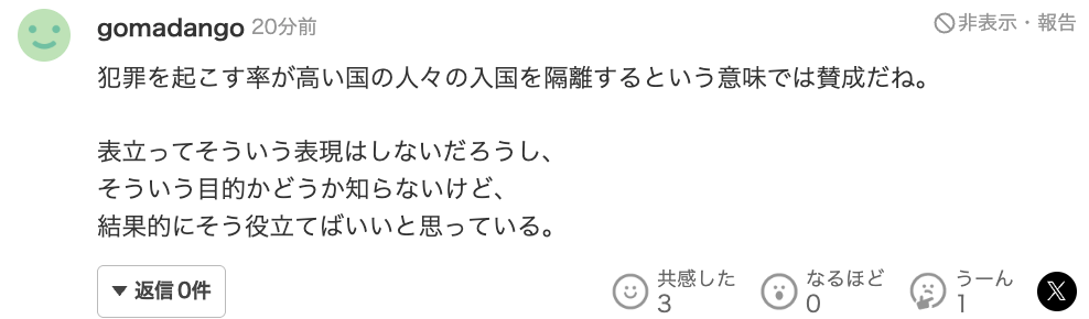 범죄 발생률이 높은 국가의 국민들의 입국을 격리하는 의미에서는 찬성해요.