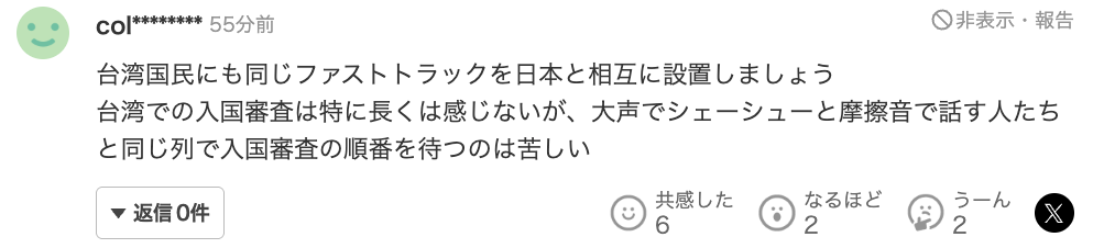 대만 국민에게도 일본과 상호간에 동일한 패스트트랙을 설치합시다