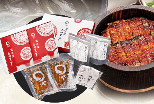 가타카시신도의 에비즈쿠시는 새우 한 마리를 통째로 사용한 새우구이 외에 우레야키, 이소야키, 아부리야키가 세트로 되어 있는 상품입니다. 선물용으로도 유용하지만, 기념품으로도 인기가 많습니다.