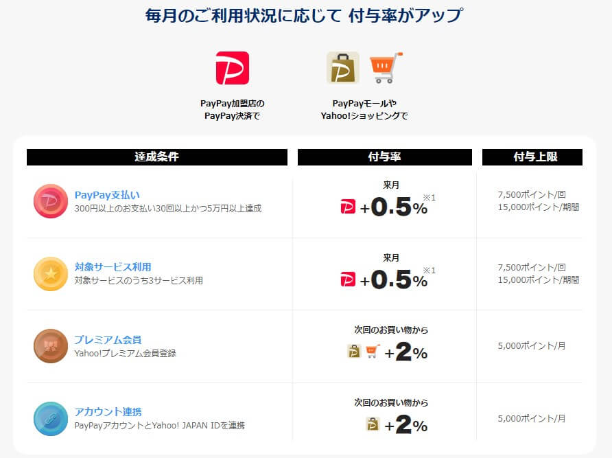 PayPay는 이용횟수나 금액에 따라 환원율이 올라갑니다!